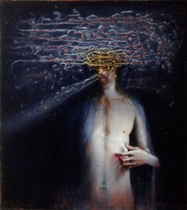 L’opera site-specific, composta appositamente per questo spazio e per questa ricorrenza, si svilupperà fra pittura, suono (composto da Alessandro Branca) e realtà virtuale.